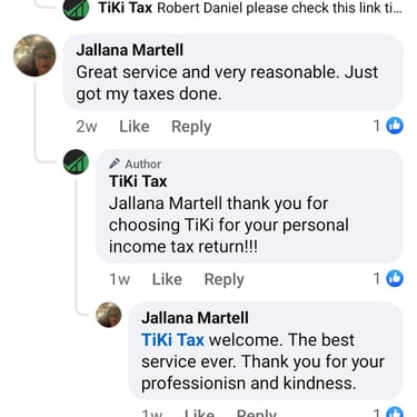 Tiki Tax provided exceptional service, maximizing my savings and simplifying my tax filing process. Highly recommend!