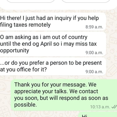 📩 Send your tax documents by email, text, or WhatsApp.