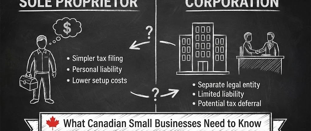 Choosing between a sole proprietorship and a corporation in Canada? Learn the key differences in taxes, liability, and compliance for small businesses.